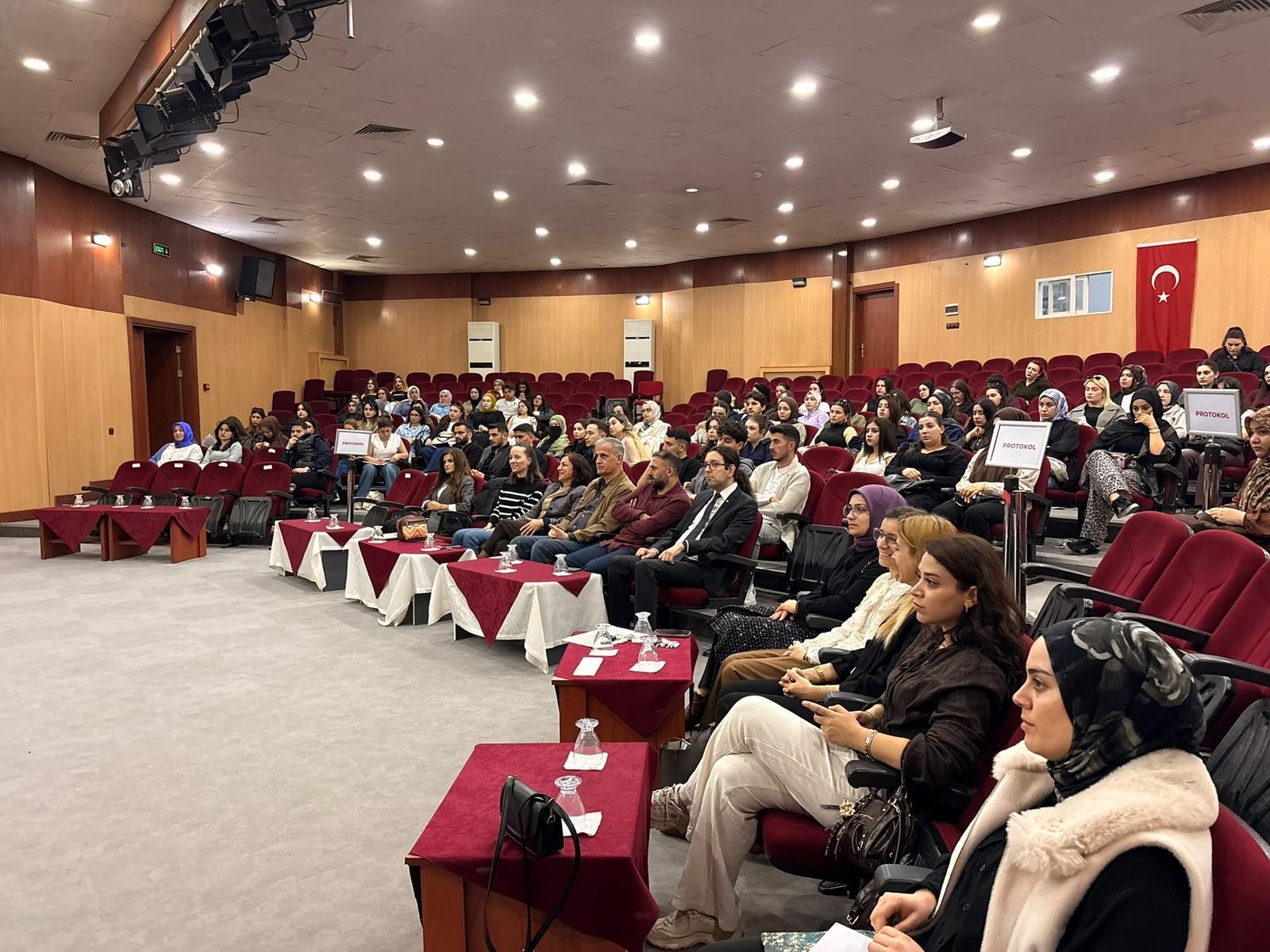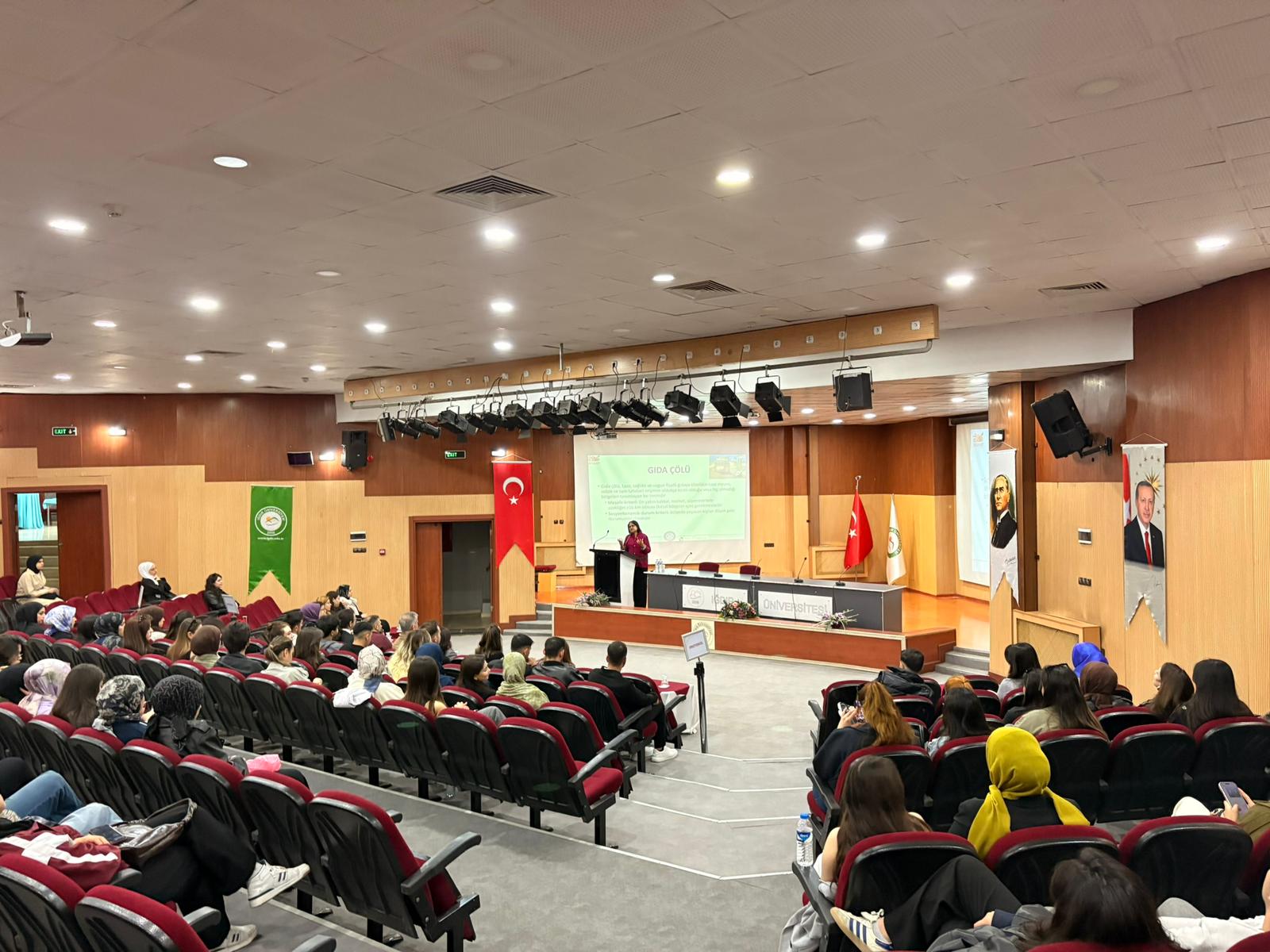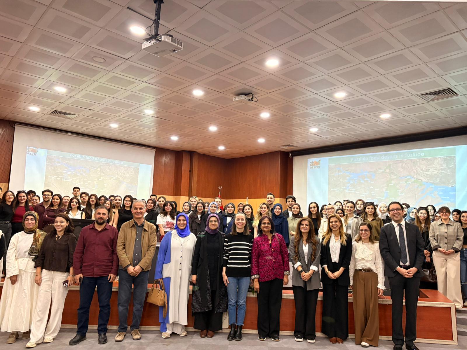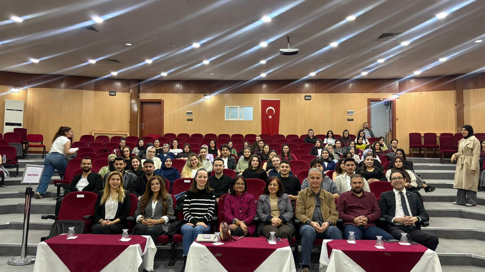 Beslenme ve Diyetetik bölümü öğrencilerinin yoğun katılım gösterdiği konferans, hatıra fotoğrafı çekimi ile son buldu.